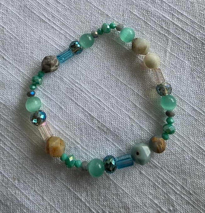 Emerald Agate, Tigers eye, and Czech beads- 18cms (4th pic)