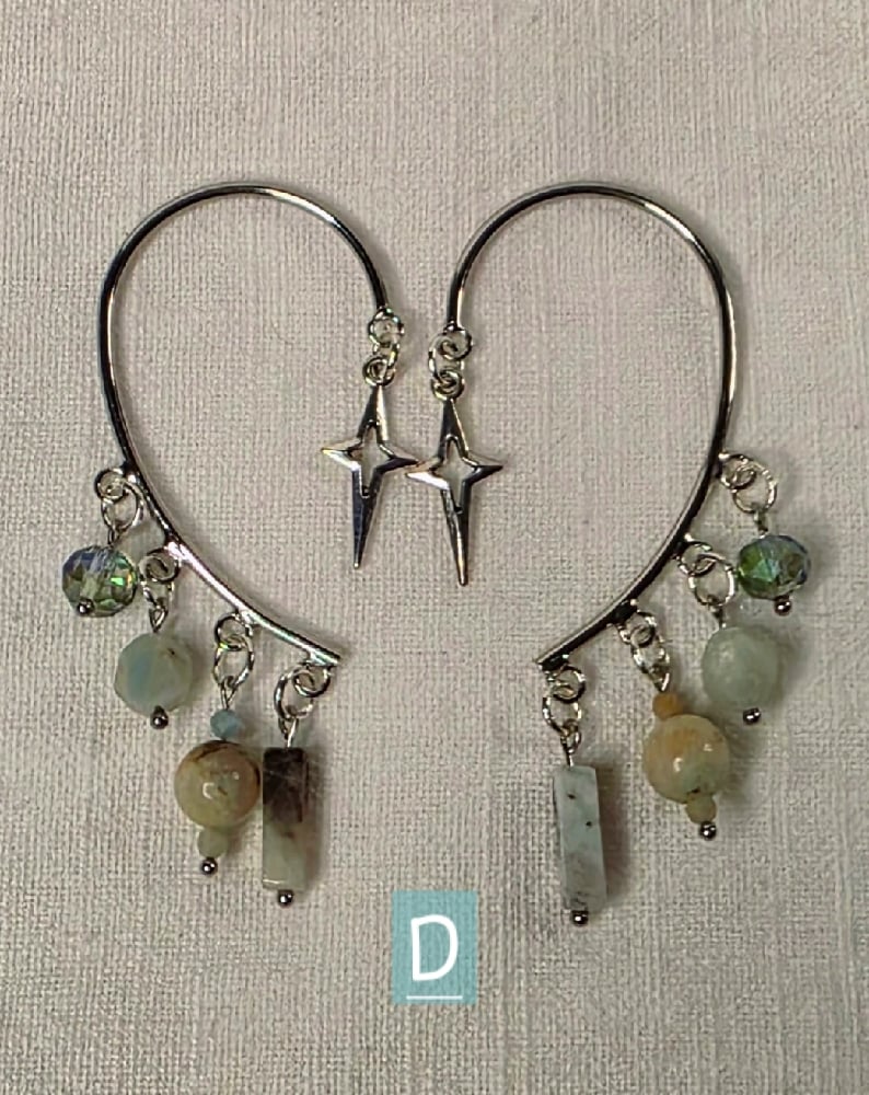 Set D: Aquamarine, glass suncatcher beads, and steel charms