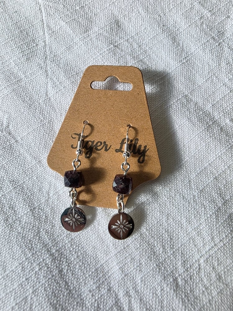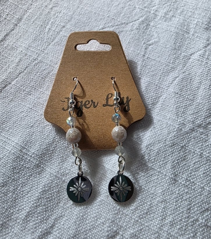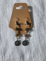 Handmade hypoallergenic dangly earrings. These are light weight. Earrings hooks are .925 silver stamped. Other materials include stainless steel, and silver plated brass wire used to connect beading. 100% genuine crystals, stones, or glass beads.