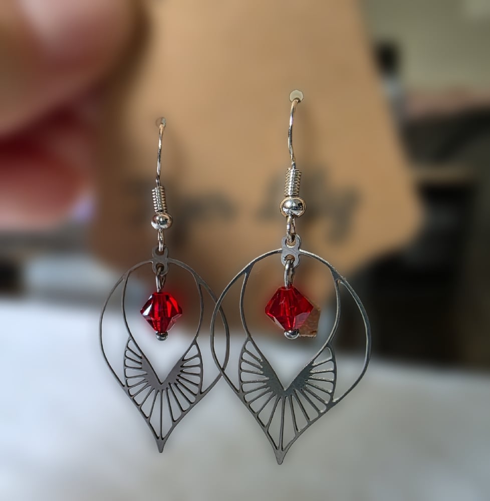 Handmade hypoallergenic dangly earrings. These are light weight. Earrings hooks are .925 silver stamped. Other materials include stainless steel, and silver plated brass wire used to connect beading. 100% genuine crystals, stones, or glass beads.
